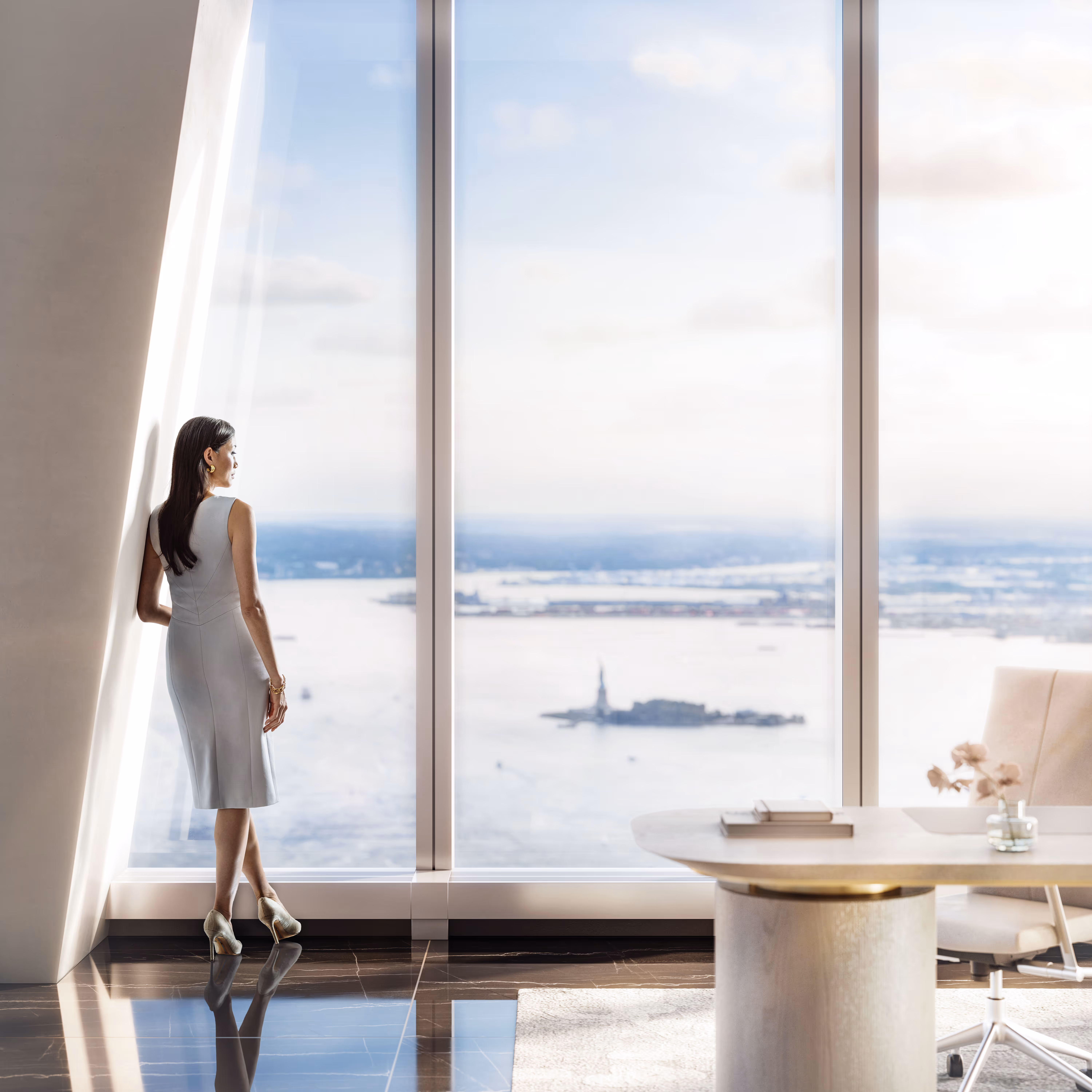 For the top two penthouses at One World Trade Center, created during my time at Altered State, I led art direction for a campaign crafted to capture the distinct atmosphere of the building’s highest floors. From early concept to final execution, I shaped the visual world—establishing tone, directing casting, styling, body language, and overseeing both CGI production and final retouching. The campaign blends modern prestige with restraint, evoking a mood of elevated minimalism. I also designed the four-week ROS media placements and a print feature in Commercial Observer to support the campaign launch and drive sustained visibility.